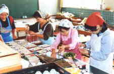 最先端の校舎という入れ物に素晴らしい山之村の児童生徒が入った教育を見たいという文部省の指定で、昭和六十年に研究発表が行われ、二百十名もの方々が参加されました。昼食は母親委員会が大活躍し、参観者全員に写真のように本校の食堂で作った弁当と汁でもてなして好評でした。