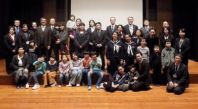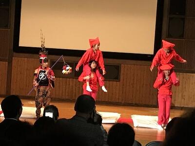 平成30年11月11日(日)に第10回目の船津座公演を実施しました。平成21年に第1回目を始められて10回を数えることとなりました。10回を記念して、例年は平日に行っていましたが日曜日に午前と午後の2部制で行い、多くの方々に参観いただきました。午前中には、記念セレモニーとして第9回までの思い出の場面をスライドで見ていただき、都竹飛騨市長にご祝辞をいただきました。これまでお勤めの校長先生や先生方にもご来場いただきました。2部合わせて300人以上の方々に見ていただき、子ども達も本当に嬉しそうでした。